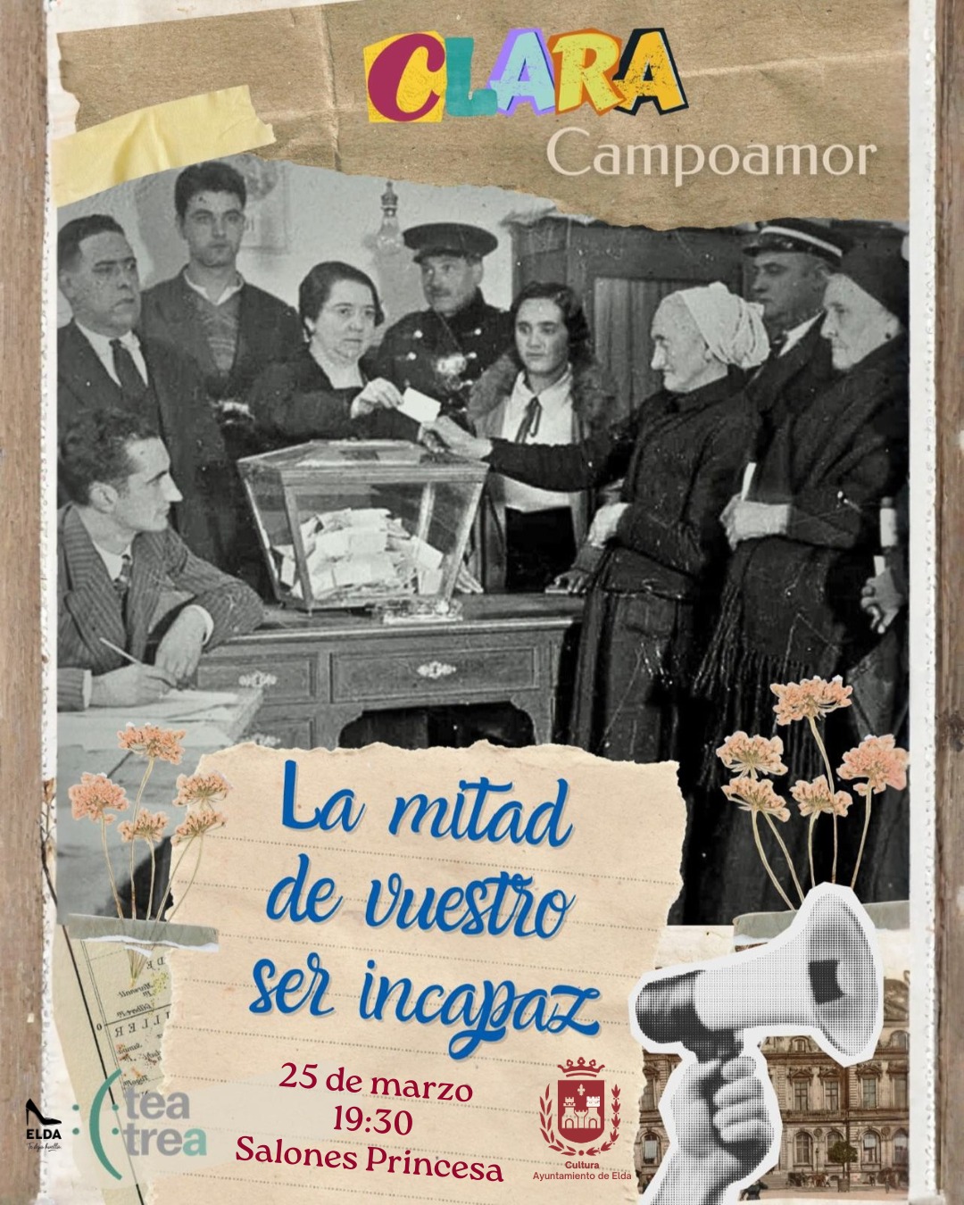 Elda da voz a Clara Campoamor con la representación de la pieza teatral ‘La mitad de vuestro ser incapaz’ de Natalia Bravo