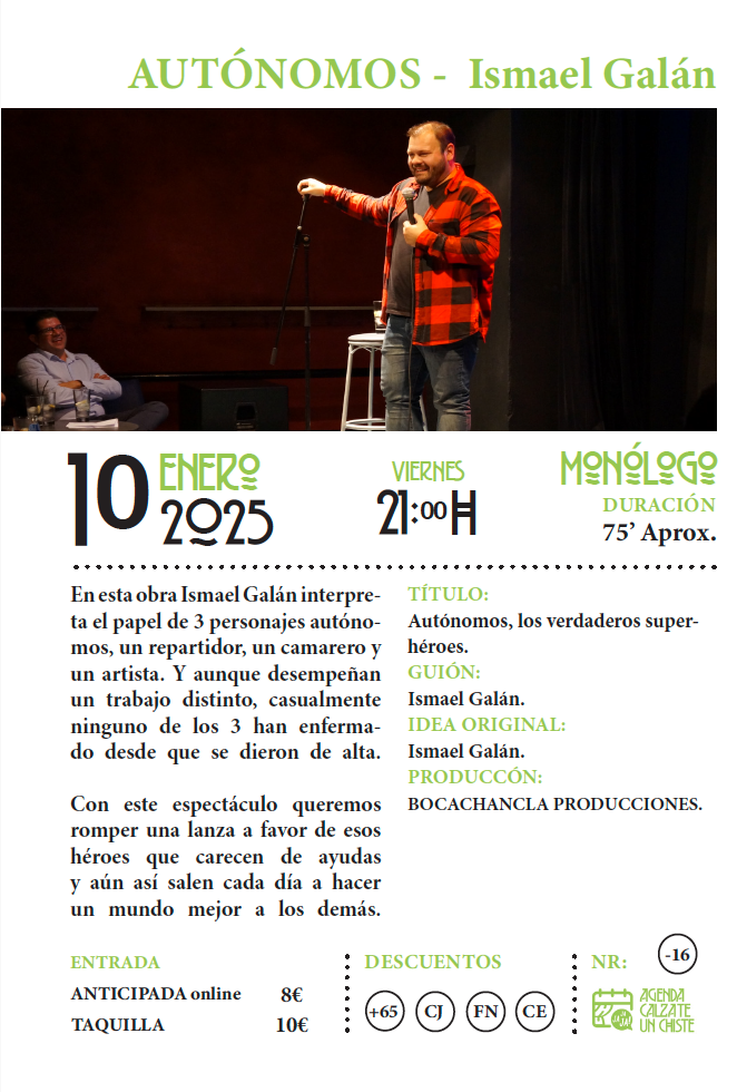 AUTÓNOMOS – Ismael Galán 21:00 10 de enero de 2025 Teatro Castelar, Elda View Location Google Ver calendario completo